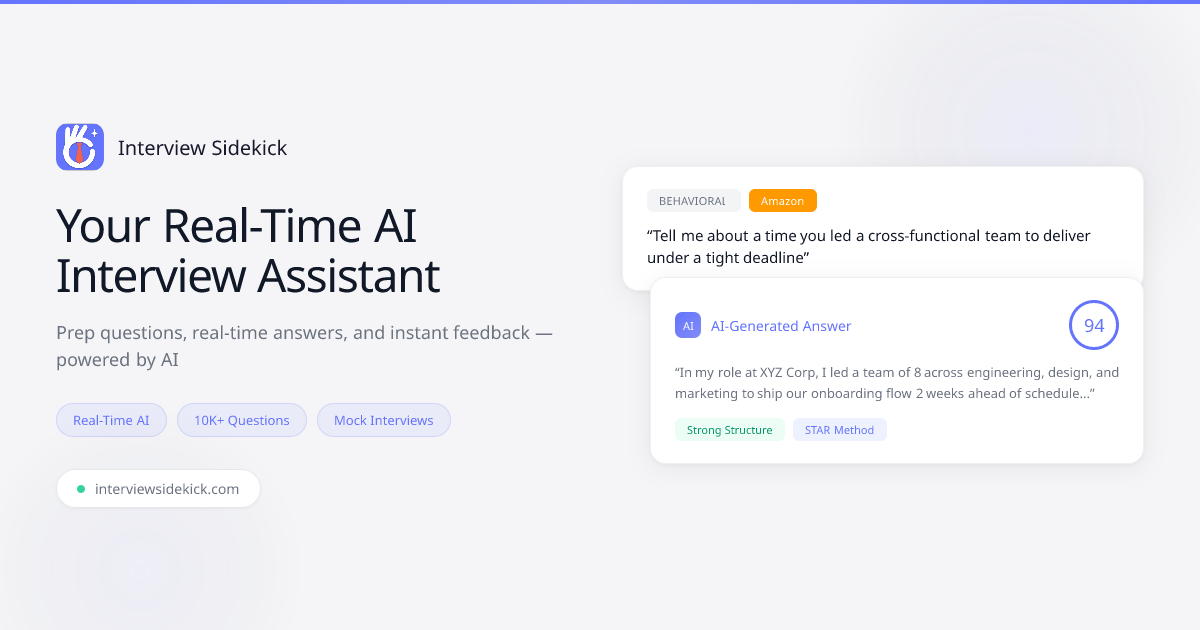 "for coding and technical interviews, for me personally, Interview Sidekick was the best one. especially in live coding rounds. even when interviewer asked to share screen, it was quick, smooth, and honestly felt undetectable." — Reddit user u/okldu9