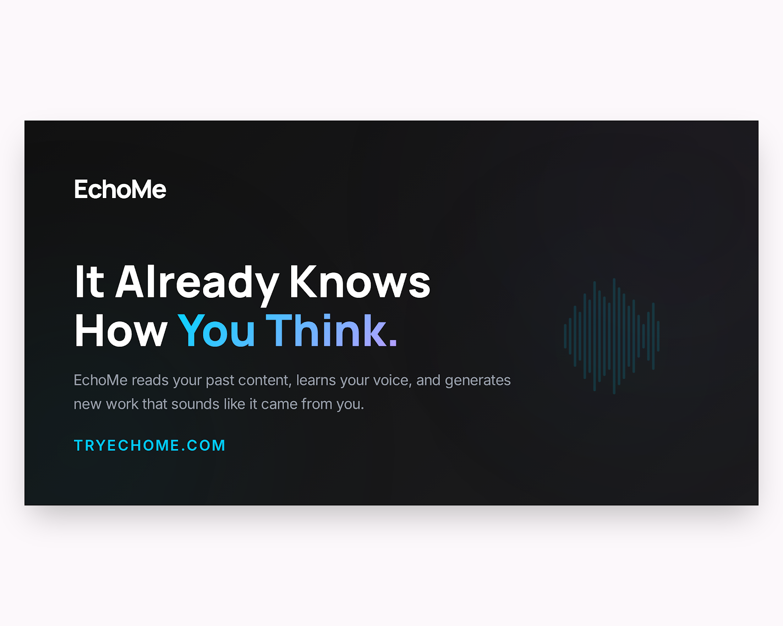 "Most AI tools start from zero every time you open them... EchoMe starts from everything you've already made... That context is why the output sounds like you — not like AI." — tryechome.com